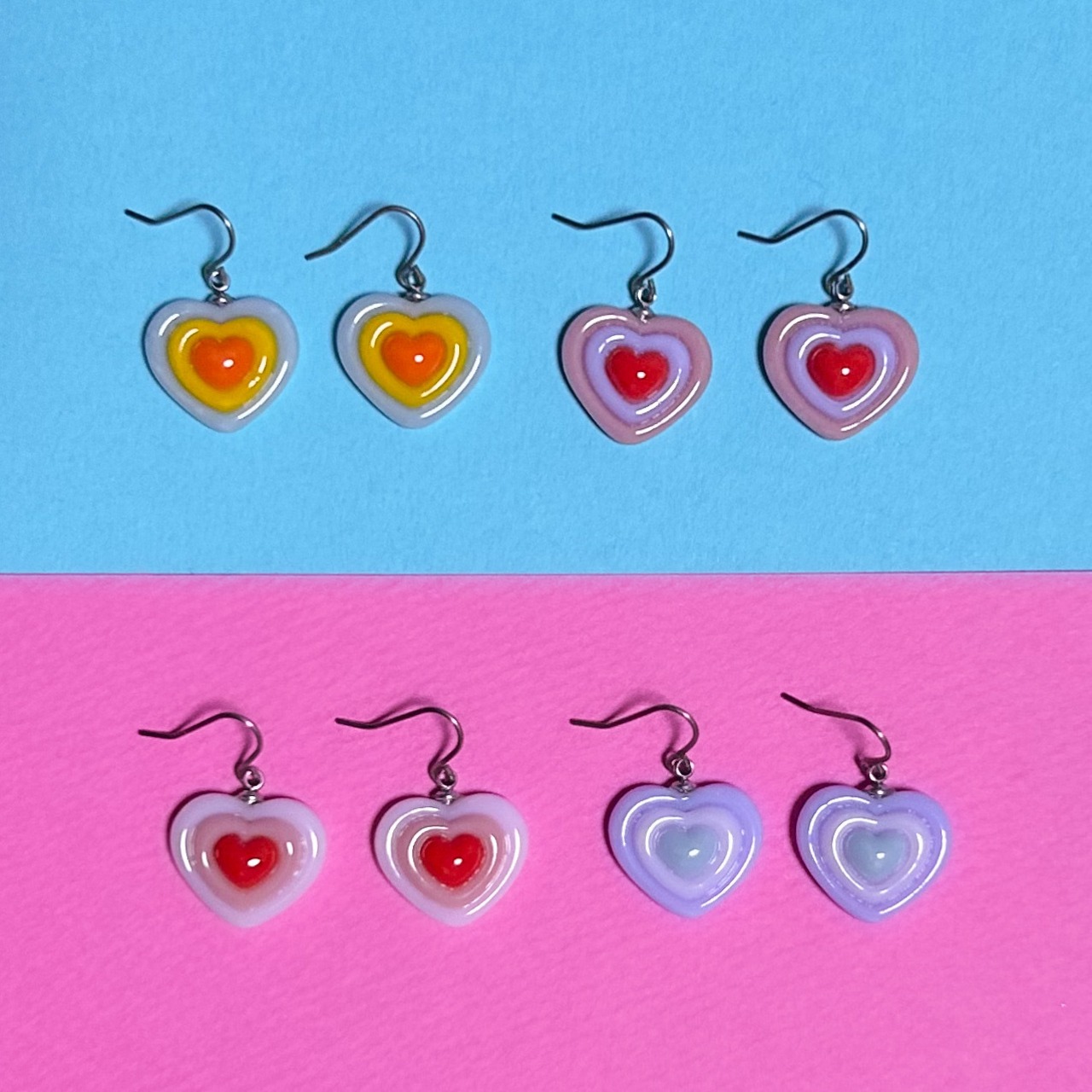 ガラスのハートピアス(チタン製・金属アレルギー対応)